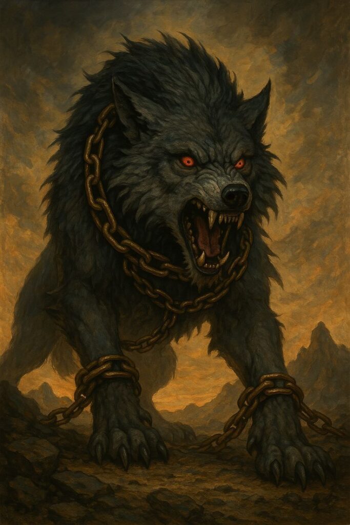 Fenrir is een wolf van onmetelijke kracht en een kind van Loki. Zijn aanwezigheid wekt angst, zelfs onder de goden, want het is voorspeld dat hij Odin zal verslinden tijdens Ragnarök. Fenrir staat symbool voor chaos en het onafwendbare lot, een kracht die geen ketting, hoe magisch ook, volledig kan temmen. In zijn ogen weerspiegelt de dreiging van een wereld op de rand van vernietiging, en zijn verhaal herinnert aan de grenzen van macht en de onvermijdelijkheid van het lot.