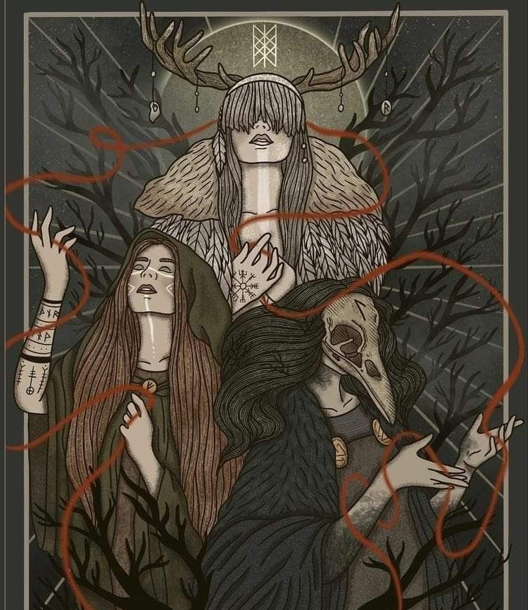 Bij de wortels van Yggdrasil weven de Norns de draden van het lot voor goden en stervelingen. Hun werk is onzichtbaar, hun invloed absoluut, en zelfs de machtigste wezens kunnen hun weefwerk niet ontwijken. De Norns belichamen de onvermijdelijkheid van tijd, noodlot en de kosmische orde, een stille maar allesomvattende kracht die de loop van de werelden bepaalt.