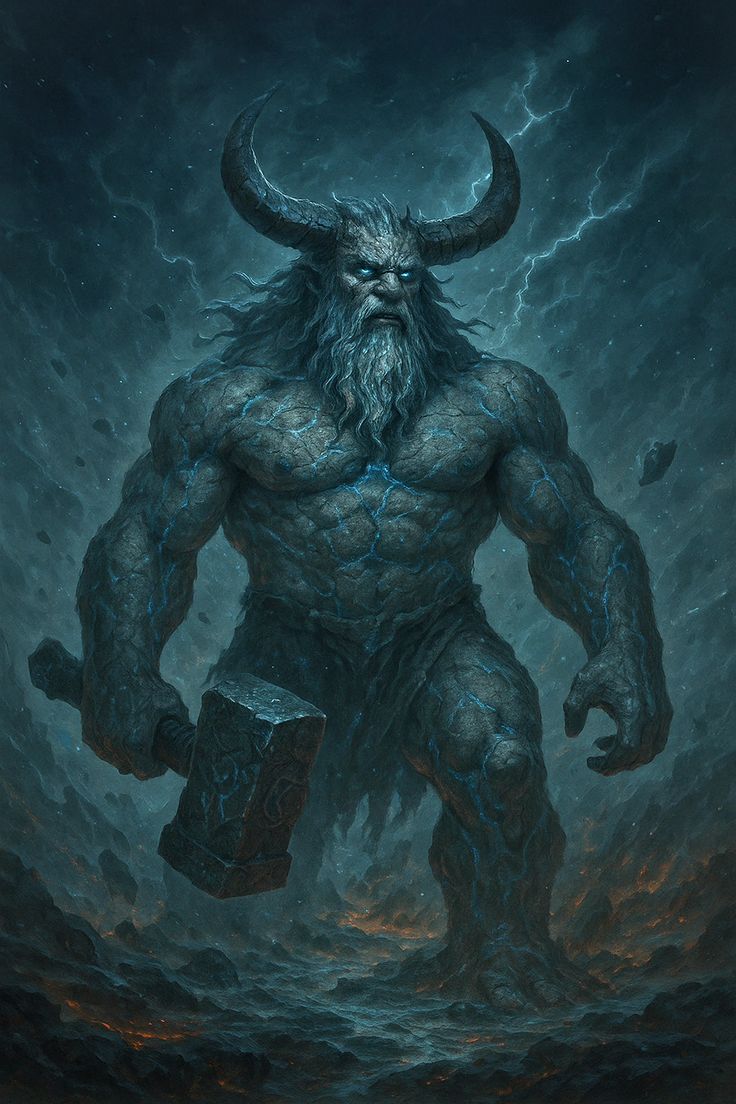 De reuzen zijn immense wezens die vaak in conflict komen met de goden, maar soms bondgenoten zijn. Ze belichamen de ruwe, ongetemde krachten van natuur en kosmos, elementen die groter zijn dan menselijke begrippen. Sommige reuzen beheersen stormen, ijs, bergen of rivieren, waardoor hun verhalen diep verweven zijn met de fysieke wereld en de verhalen van goden en stervelingen beïnvloeden.