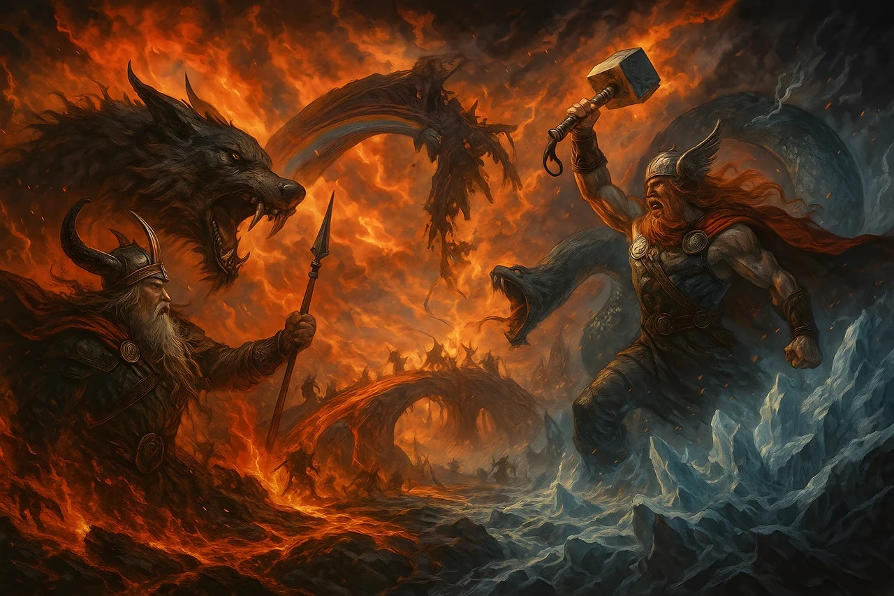 Ontdek de verhalen die eeuwenlang de Noordse volkeren vormden: goden die strijden en scheppen, werelden die verbonden zijn via Yggdrasil en mythen die tot vandaag blijven fascineren.