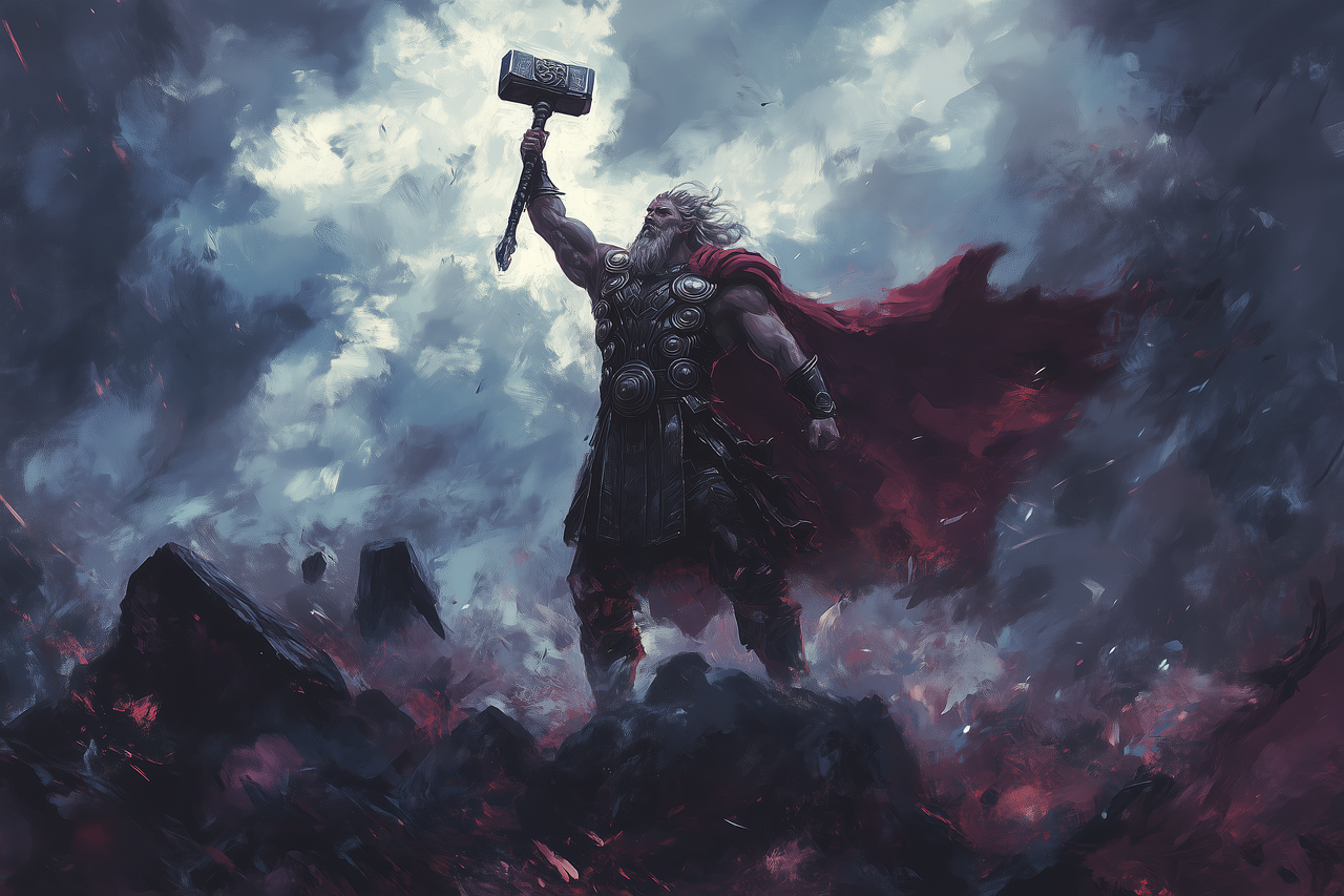 Beschermer van goden en mensen, met zijn hamer Mjölnir beheerst hij stormen en strijd.